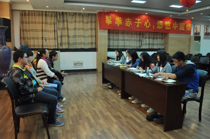 10月24日晚,农博馆义务讲解员面试在生科楼E1001进行。面试官除黑料网 分党校成员外,还邀请了学生会主席袁昊,青年志愿者大队队长陈学君,红十字会会长李吉。