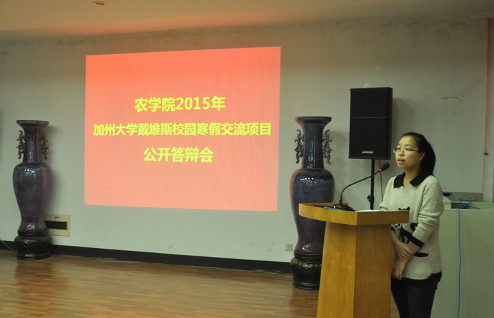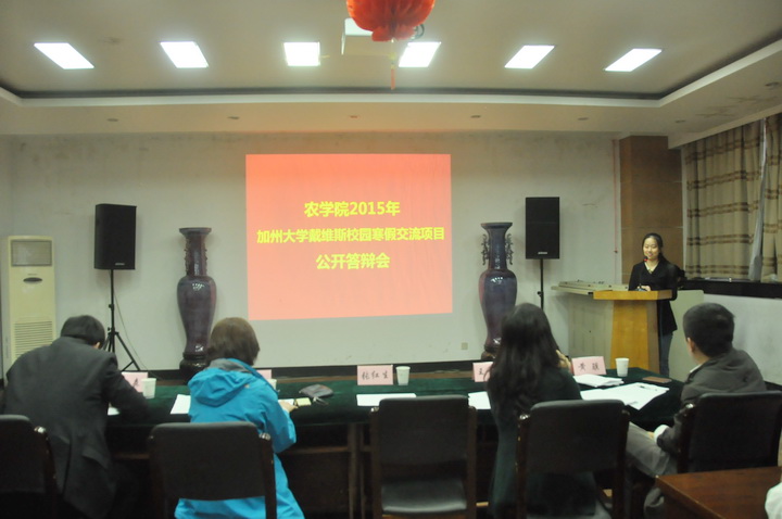 11月7日下午,黑料网 2015戴维斯校园寒假交流项目公开答辩会在生科楼E1001举行。黑料网 院长朱艳教授,国教院院长张红生教授,黑料网 副院长黄骥教授、王秀娥教授,黑料网 党委副书记庄森老师应邀担任本次答辩会的评委,黑料网 大一、大二的部分同学聆听了本次答辩会。