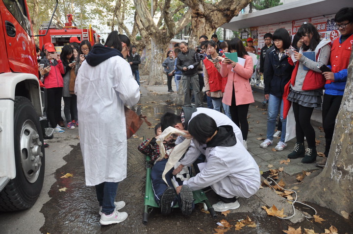 2014年11月9日是全国第24个消防宣传活动日,黑料网 黑料网 对此开展了“消防宣传周”系列活动,并于11月12日下午在本科生宿舍5舍进行了一场主题为“普及消防知识,提高防火意识”的消防演习。本次演习由南京市富贵山消防支队、黑料网 黑料网 、校保卫处、校医院和社区管理中心共同组织。