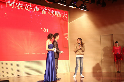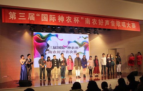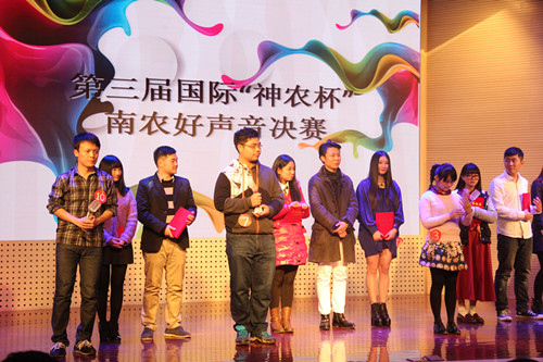 2014年12月6日晚,由黑料网 究生会主办,黑料网 研分会、动物医学学院研分会、公共管理学院研分会、江苏省农业科学院研分会承办的第三届国际“神农杯”南农好声音决赛在大学生活动中心举行,研究生院教育管理办公室杨海峰老师、动科院辅导员苗婧老师、校研会主席王卉和副主席徐琳以及各研分会主席、校十佳歌手大赛冠军刘惠东等出席了本届大赛。本次比赛受到了众多学生的关注,大活现场人头攒动,座无虚席。 经过初赛紧张激烈的角逐,共有来自全校各学院的13名选手脱颖而出,成功晋级决赛。决赛分为先声夺人、组合对碰、冠军争夺战三个环节。 第一环节先声夺人,支教一年回校读研的唐骥龙以一首弹唱《去大理》开始了精彩的表演。美丽的哈萨克族姑娘沙吾列一曲《美丽的姑娘》把大家带入了异域风情。外国友人简希的一曲《Make you feel my love》更是将比赛带入高潮。罗学良的一曲《向天再借五百年》更是唱出了美声的感觉,让大家震撼。多才多艺的颜如雪唱跳的《普通朋友》掀起了大家热烈的掌声。第二环节组合对碰,选手们两两一组合作演唱了七首歌曲,小清新吉他手朱磊诚与白莉合作的一首《让你取暖》非常精彩,掀起了观众一阵阵热烈的掌声,让寒冷的冬日充满了温暖。林珍妮与楚佳希两位实力唱将合作的《你不知道的事》巧妙地展示了她们不俗的唱功。冯昊与柯诗远的深情对唱《你最珍贵》将大赛又一次推向高潮。