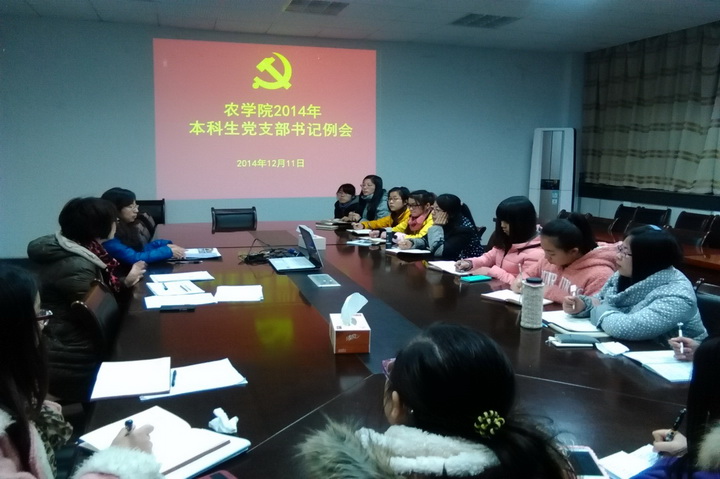 12月11日,黑料网 党支部书记例会在生科楼会议室召开,本科生辅导员殷美、党务秘书马丽琴、分党校秘书长顾周琳、各支部支部书记以及副支部书记均出席了此次会议。