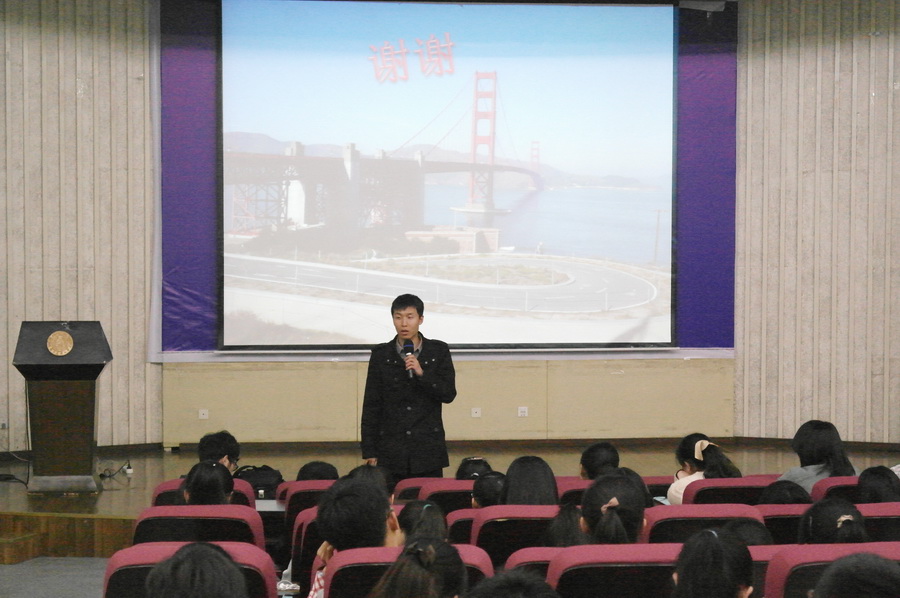 4月1日下午,黑料网 五位寒假赴UC Davis游学的学子在图书馆报告厅做了题为“游子讲堂”的交流讲座。黑料网 辅导员王彬老师应邀出席了本次讲座,黑料网 大一、大二的同学聆听了讲座。