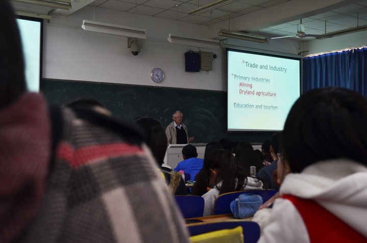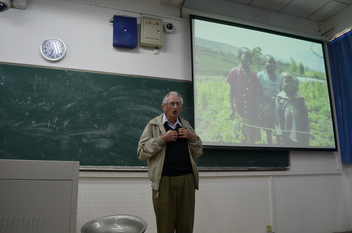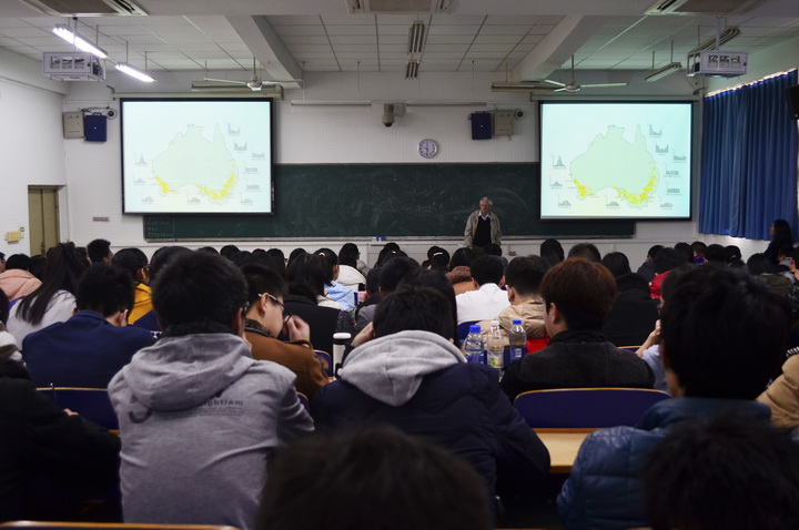 课程开始,Robert教授循序渐进,从农业发展前景延伸到作物病害研究,分五个方面来阐述两者之间的联系。他谈到,中国和澳大利亚都是农业生产大国,在农业发展方面有很多值得互相借鉴与交流的地方,并详细为同学们讲述了澳大利亚小麦的种植情况。在Robert 教授课件中,有一张在肯尼亚拍摄的照片,是四个肯尼亚孩子和他们纯真的笑容,背后是蓝天白云与大片的绿色田野。当地的经济条件相对落后,可孩子们的脸上却依然是那样天真无邪的笑靥。据Robert 教授介绍,当地的小麦很容易感染锈病,而教授对小麦抗锈病的研究成果极大地改善了这一难题,实实在在地解决了当地小麦生产的困境。这一生动的例子让同学们深切感知到,科学的魅力在于能够更高效率地解决人们所面临问题,更大程度地促进社会的发展。