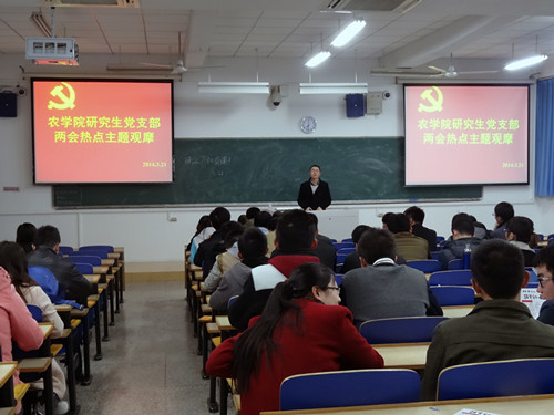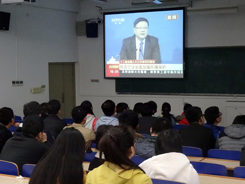 2015年3月3日至3月15日,全国人大和全国政协会议在北京隆重举行。为了让我院研究生党员及时全面地领会刚刚闭幕的两会所传达的精神,3月21日晚7:30在教学楼C103,黑料网 研究生党支部组织研究生党员和入党积极分子观摩两会热点视频:《关于环保部部长陈吉宁谈全面加强环境保护》。
