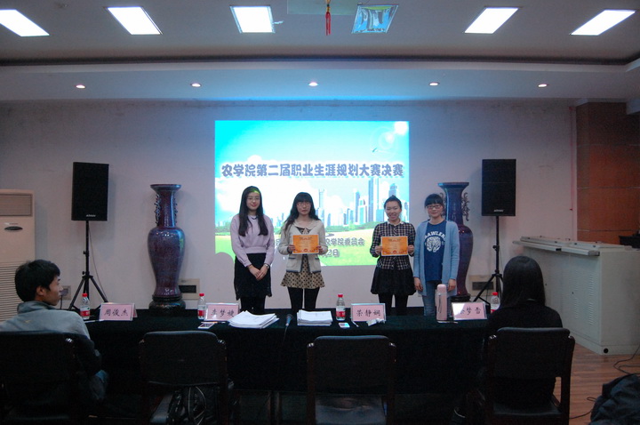 决赛分为三个环节。首先是6分钟的职业生涯规划方案介绍。选手们分别从自我分析、环境分析、行业分析等方面全面评估自己的职业机会,并相应制定了完善的实施计划。虽然每位选手的职业目标不同,但是整体的职业价值观都是立志服务于我国三农事业。接下来是3分钟的职业情景模拟环节,而这也是整场比赛气氛最热烈的环节,选手们根据自己的目标职业特点选择了不同的表演形式,引来现场一个又一个小高潮。最后是评委老师提问环节,评委们根据选手作品的规划内容,针对其中可能出现的问题、遇到的挑战向选手进行提问,并对选手作品中涉及的一些细节和行业前景给出中肯的建议。