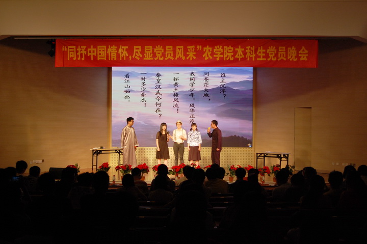 晚会开始,各支部的风采展示和排练花絮展现了各支部对于此次党员晚会的用心投入。由农学一、二支部带来的话剧《袁隆平》展示了袁隆平的农业梦想。植物实验专业支部和植物实验131班排演的《第一书记》及农学三、四支部带来的《村官那些事儿》带我们领略了大学生村官的新面貌真风采。种子一、二支部带来的《恰同学少年》带领观众们回到那段峥嵘岁月,体会同学少年的风华正茂、挥斥方遒。还有由大一同学带来的《琴棋书画》表演中国风洋溢、美轮美奂。人影戏《星火之路》创意独特、叹为观止。合唱与诗朗诵《我的祖国》壮志豪迈、深情满满。每个节目都经过了精心准备,各有特色。