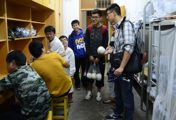 9月18日晚七点,黑料网 分党校秘书长顾周琳,团委副书记马心怡,学生会主席袁昊,副主席惠帅、史轩宇、曹建楠分别走访了黑料网 大一男女生宿舍,并为同学们送去了精心挑选的柚子以表示慰问。