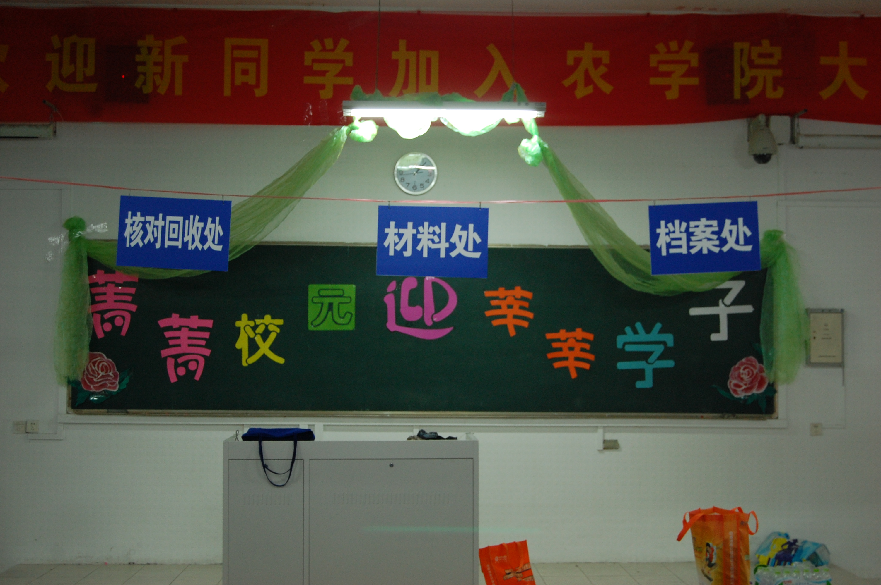 “今年的主题是‘菁菁校园迎莘莘学子’,是大家一起想出来的。会场的布置以营造温馨的气氛为主旨,让新同学们能感受到黑料网 大家庭的温暖。”学生会主席周庆鹏介绍道。门口摆放的宣传板上是学长学姐们的祝福寄语,黑板上贴着醒目的标语彩纸,窗户上装饰的是同学们吹出的五彩气球,墙壁上是动感的人物剪影贴纸。更有一幅气势雄浑的大型中国画为会场增添了浓浓的中国风,这幅画是才华横溢的宣传部部长丁园的杰作。大家团结协作,互帮互助,将黑料网 迎新会场布置的温暖美丽。