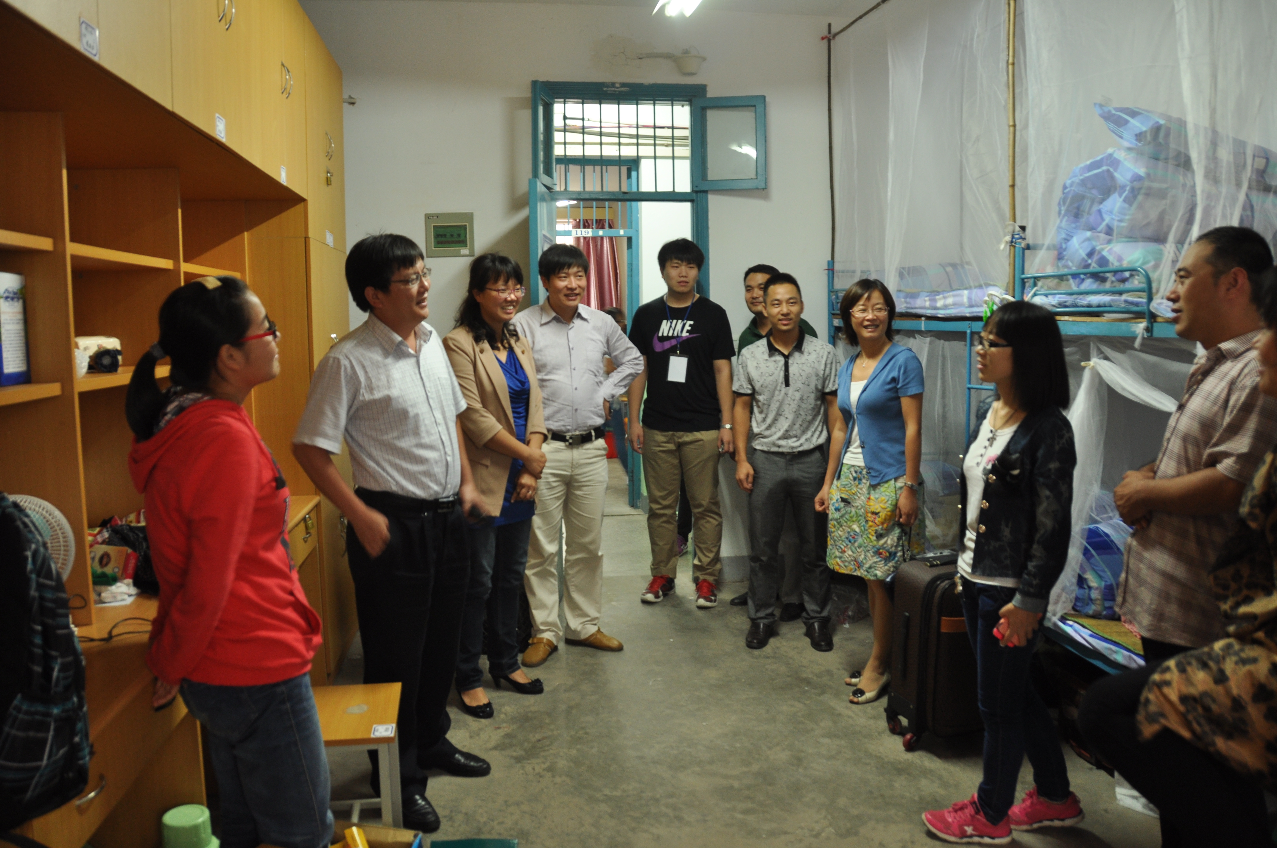 交流期间家长与同学们还谈到了有关金善宝实验班以及专业就业前景的问题,领导们都一一详细解答。走访期间了解到有些同学是少数民族,又是自己一人来学校报道,领导们对他们表示赞赏,当然更是细心地询问了他们对生活环境以及生活习惯是否适应,鼓励他们多与同学们交流,有困难及时向院里反映。女生宿舍走访结束后,领导们又前往男生宿舍2舍与家长和同学们进行交流,了解同学们的现状。