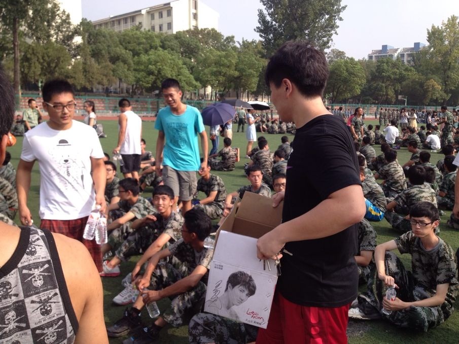 烈日炎炎,各班的班长与团支书来到2013级新生训练的场地,为他们送去解渴的水,受到了教官和新生们的热烈欢迎。训练的环境虽然艰苦,但是军训最重要的不仅是学到多少军事技能,而是通过军训锻炼意志,磨练吃苦耐劳的精神,这种精神能够在以后的学习生活中帮助同学们克服各种困难。在军训短短几天里,齐步、正步、齐步变正步、集合、解散等预定科目初见成效。在夕阳的余晖下,我们看到的是教官严格训练的场面,是新生刚毅充满活力的脸庞。这次送水活动意义丰富,让正在军训的新生感受到了学院领导以及辅导老师们对新生的期待和关心。