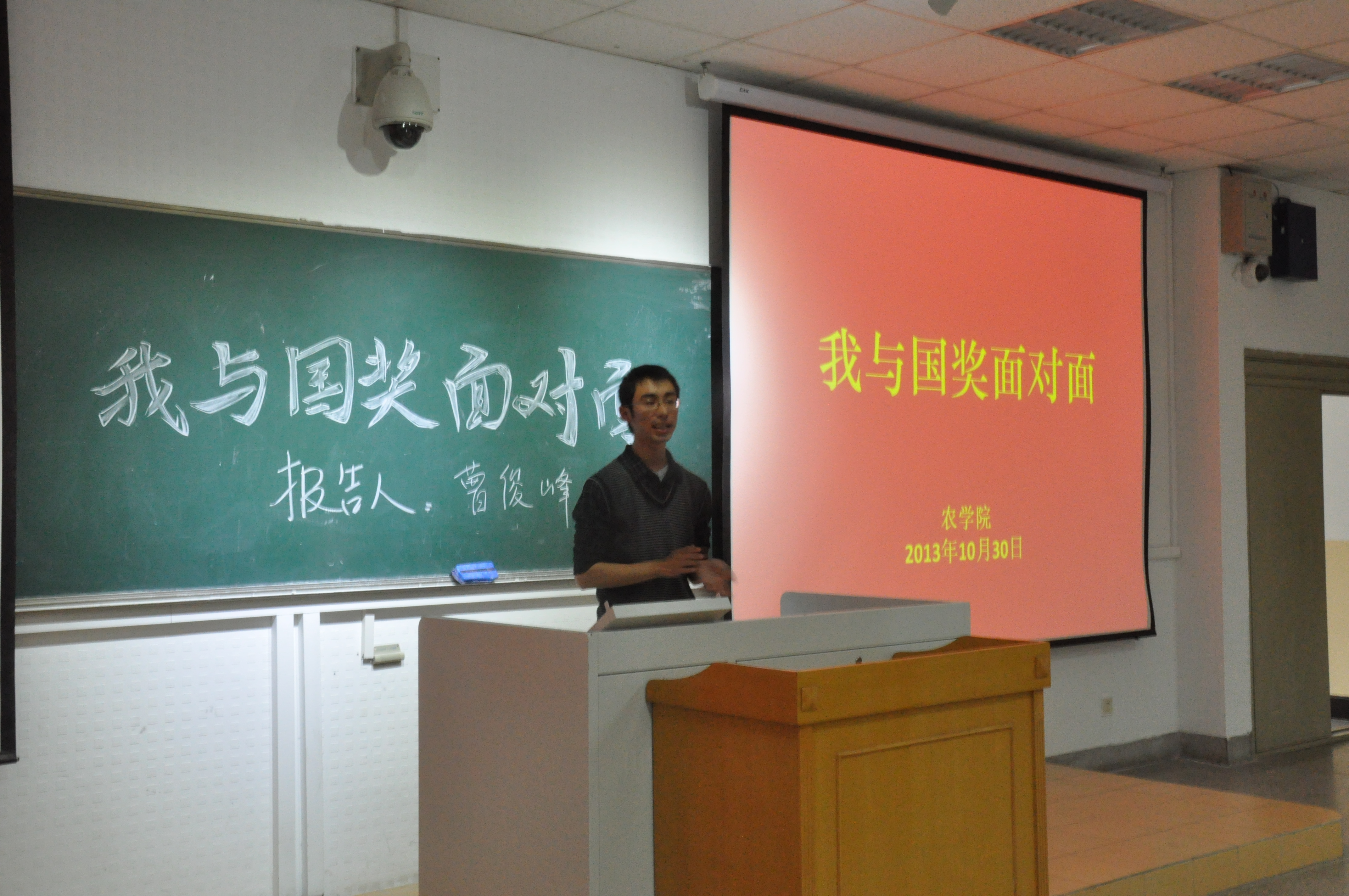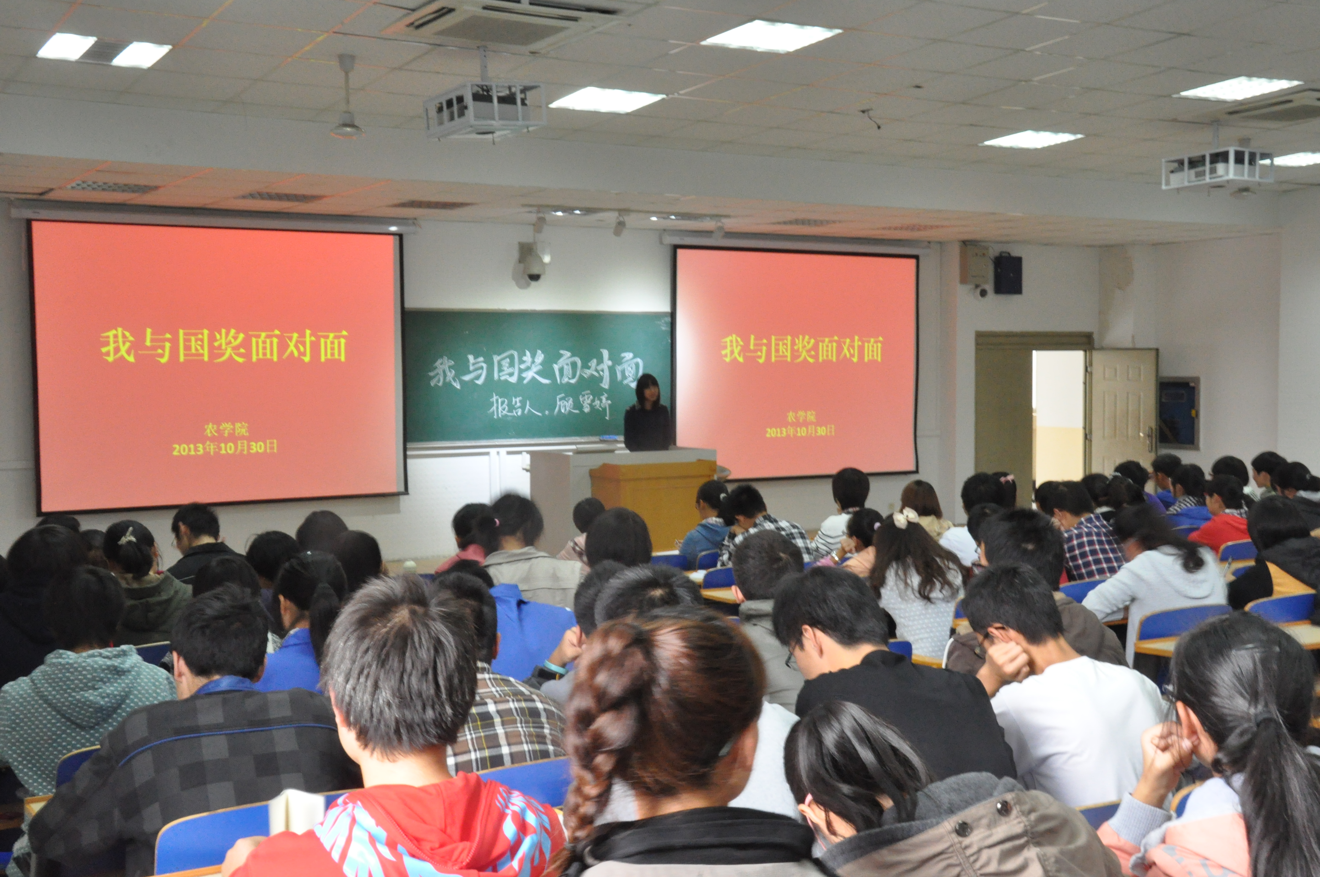 10月30日星期三下午,由黑料网 黑料网 团委学生会主办、学习部承办的主题为“我与国奖面对面”主题报告会于教学楼C301举办,这次报告作为一次别开生面的形势与政策课,令大一的同学们都很期待。学习部邀请了今年获得国家奖学金的五位同学为同学们作关于个人学习经验的报告,分别是植物实验111班曹俊峰、农学113班孙彦、农学114班朱星洁、种子112班李霄和植物实验121班顾雪婷。出席的有黑料网 大一同学及辅导员彭益全。