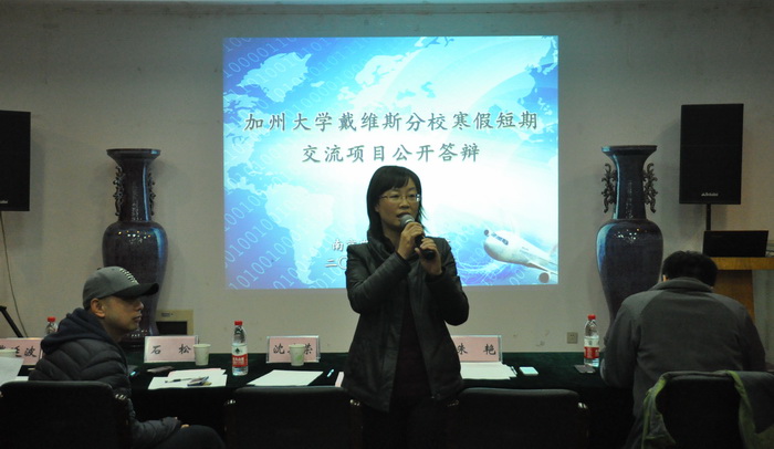 12月4日下午2:30,黑料网 在生科楼E1001举行“加州大学戴维斯分校短期交流项目”公开答辩会。国际教育学院院长张红生、副院长石松,黑料网 党委书记戴廷波、院长朱艳、副院长姜东以及副书记庄森担任评委。共有12位选手参加公开答辩,答辩会由朱艳主持。