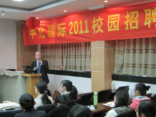 2010年10月28日下午,中化国际(控股)股份有限公司在黑料网 报告厅面向黑料网 和植保院毕业生同学进行秋季校园招聘会。中化集团公司人力资源部总经理王文克亲临招聘会现场,黑料网 党委副书记刘亮参加了招聘会。